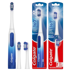 Colgate 360 Floss Tip Sonic Powered Battery Toothbrush + 2 Floss Tip Refill Heads