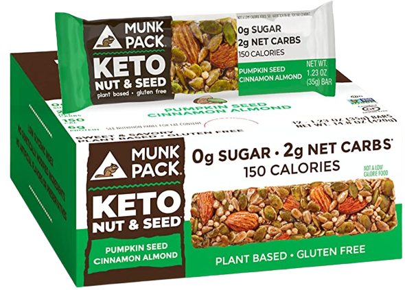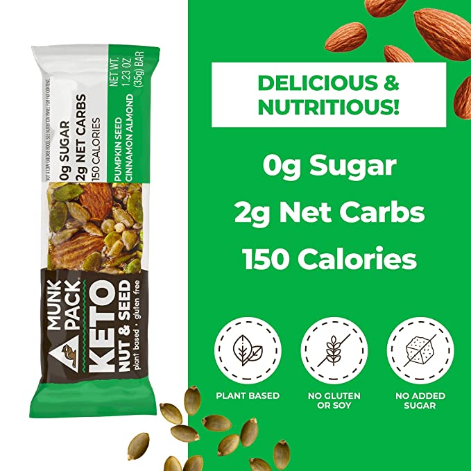 A nutritious blend of pumpkin seeds and almonds are coated with cinnamon to make the perfect crunchy and delicious, but not-too-sweet treat. Powered with keto-friendly fats, 0g sugar, 2g net carbs, and only 150 calories, our Pumpkin Seed Cinnamon Almond Keto Nut & Seed bar tastes just as great as it makes you feel.