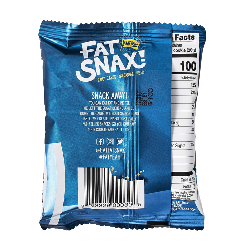 Looking for healthy snacks can be tricky, especially when you're looking to limit your carb intake. That's why Fat Snax created these indulgent yet healthy keto and low-carb cookies. Fat Snax Chocolate Chip cookies have 0 sugar, under 2 net carbs, and 8-9 grams of healthy fat. They're designed to keep you in ketosis and feeling healthy. Dunk them in your coffee, eat them for a 2 pm lunch break, or curl up in front of the TV and have yourself a snack. Hungry for a low-carb and keto snack? Fat Snax is the cookie that loves you back.