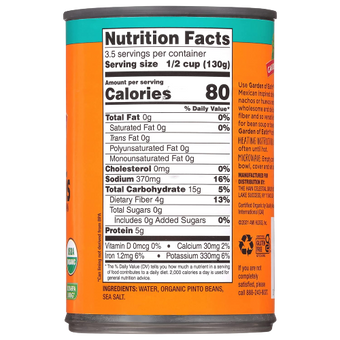 Ingredients: Water, Organic Pinto Beans, Sea Salt.