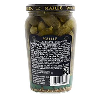 These special little pickled cornichons (gherkins), harvested before reaching maturity for that extra-tart bite, make the perfectly balanced garnish for a meat terrine, pate or gruyere cheese, and are essential nibbling when there is a plate of fennel salami or cured ham on the go. They also add flavor and are an essential component in classic dishes ranging from steak tartar and sauce gribiche, to potato salad.