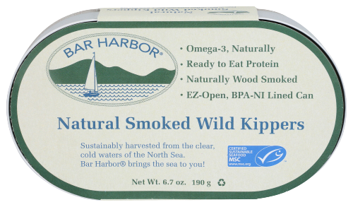 Bar Harbor's Smoked Wild Kippers is naturally wood smoked herring preserved in salt. When you live on the coast of Maine, your life is ruled by water. Waves, gulls in the sky, the thrilling tug of a fish on the line. Our herring, mackerel, and kippers keep the clean bite of cold, clear water in mind. All of Bar Harbor's seafood has the snap of crisp offshore wind, and is made by people who grew up on the water. It's as close to "fresh off the boat" as you can get.