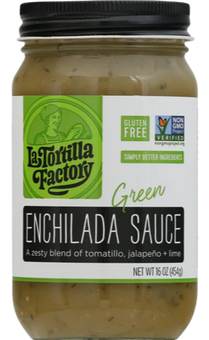 Tomatillos and lime burst with freshness in this zesty green enchilada sauce. Great for baking traditional enchiladas or to use as a slow cooking sauce for pork shoulder or shredded chicken. Our Green Enchilada sauce is a blend of tomatillo, jalapeño, and lime— is gluten-free, Project Non-GMO Verified, and made with no artificial ingredients. And the best part? Dinner will be ready in 20 minutes or less!