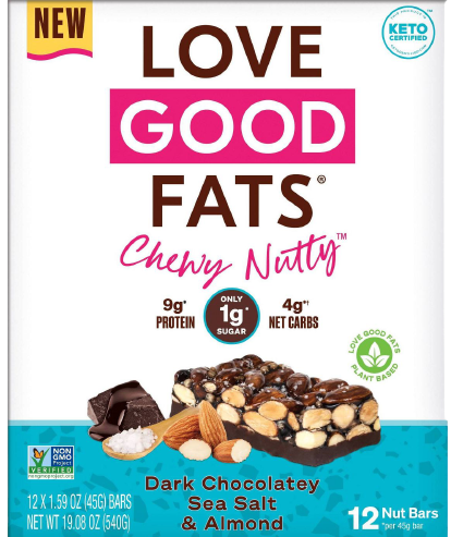 Ingredients: Fats Blend (dry Roasted Almonds, Coconut Oil, Medium-chain Triglycerides) Tapioca Fiber, Chicory Root Fiber, Fava Bean Crisps (fava Bean Protein Isolate, Tapioca Starch), Dark Chocolate Flavored Coating (chicory Root Fiber, Palm Kernel And Palm Oil, Brown Rice Protein, Cocoa Processed With Alkali, Sunflower Lecithin, Salt, Stevia Leaf Extract), Glycerin, Cocoa Powder, Natural Flavor, Sea Salt, Sunflower Tocopherol, Sunflower Lecithin, Stevia Leaf Extract. Contains Milk, Almond, Coconut. Produced In A Facility That Also Processes Egg, Other Tree Nuts, Peanuts, Soy, Wheat