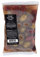 Ingredients: Olives (Greek Olives, Kalamata), Water, Red Wine Vinegar, Sea Salt, Spices, Citric Acid (Acidity Regulator).