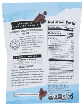 Ingredients: Organic cocoa beans, organic coconut sugar, organic cocoa butter, pink Himalayan salt