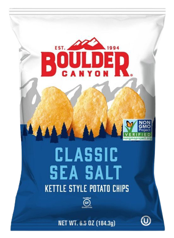 Boulder Canyon Totally Natural Kettle Chips deliver hearty, crisp, and crunchy potato chips cooked in small batches for a truly satisfying snack.