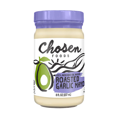 Ingredients: Avocado Oil, Roasted Garlic Puree, Filtered Water, Egg Yolks, Organic Whole Eggs, Organic Distilled White Vinegar, Salt, Organic Mustard (Distilled Organic Vinegar, Water, Organic Mustard Seed, Salt, Organic Spices), Organic Rosemary Extract