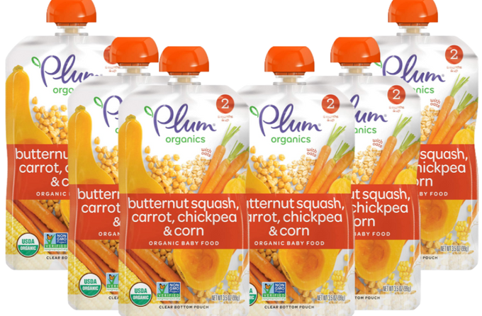 Plum Organics Stage 2 (6+ months) organic baby food pouches are made with blends of fruits, veggies, and ingredients that are perfect for exposing your little foodie to unique flavors, textures, and colors.