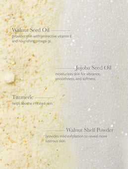 Our Exfoliating Body Cleansing Powder thoroughly cleanses while polishing the skin with turmeric and walnut shell powder. Skin is left feeling addictively smooth, soft, and supple, thanks to jojoba and walnut seed oils. One bottle of this concentrated cleanser is equal to one liter of a traditional cleanser! You’ll be so glad you made the switch, and the planet will too!