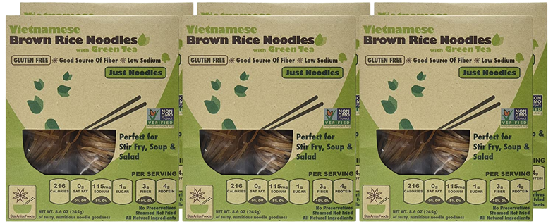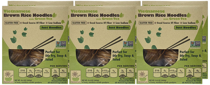 Ingredients: Brown Rice Noodles: Brown Rice, Water, Organic Green Tea, Salt.
