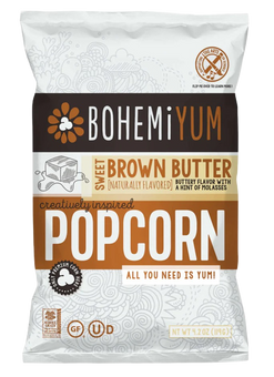Are you looking for a new addiction? BOHEMiYUM Sweet Brown Butter Popcorn is unlike anything you've tried. The sweet and buttery flavor is mouth-wateringly delicious.Close your eyes, and imagine a warm skillet full of perfectly browned butter...mixed with just the right amount of golden sweetness. Now, feast your eyes on BOHEMiYUM's Sweet Brown Butter! Our delicious non-GMO, organic popcorn will delight you with a buttery flavor, and a hint of rich molasses.