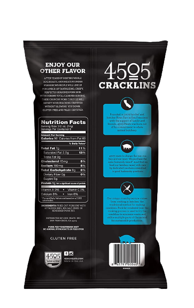 Our cracklins are made from skin from the pig's shoulder and still have the fat attached, they pack a serious crunch along with almost frosting-like layers of fat, so each bag is a play of textures Our sea salt crack lins contrast the high-fat content of the crack lin and make it easy to eat The whole BAG. Some might say these are the best salty, crunchy Keto snacks Our pork crack lins have 0 Carbs and 7+ grams of protein per serving. They are also Keto Certified, Paleo certified and naturally gluten-free