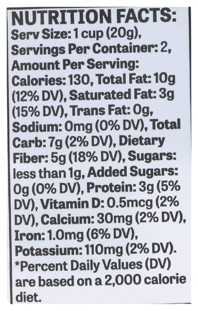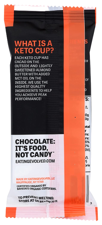 Ingredients: Organic Almonds Organic Cacao Organic Jerusalem Artichoke Fiber Organic Cacao Butter Organic Monk Fruit Extract Organic Mct Oil