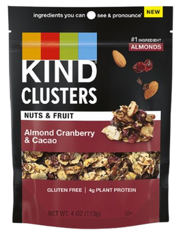 Ingredients: Almonds, Cranberries, Chicory Root Fiber, Sugar, Macadamia Nuts, Honey, Rice Flour, Glucose Syrup, Soy Lecithin, Sea Salt.
