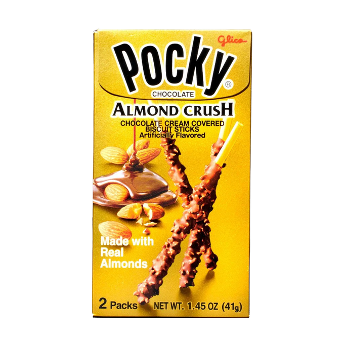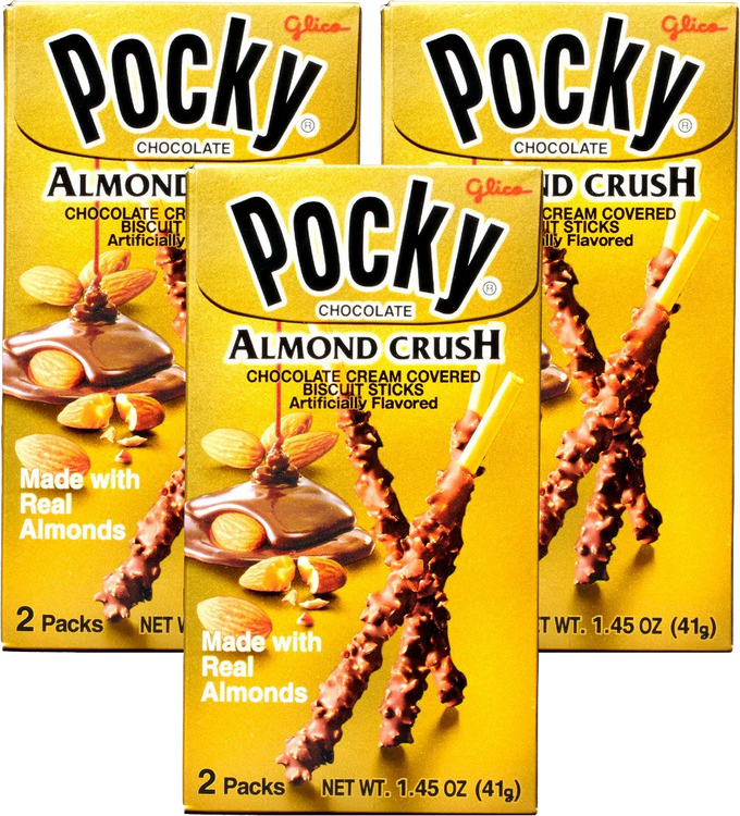 Almond Crush Cookies (3 Pack) offer a delightful combination of crunchy biscuit sticks covered in rich chocolate and real almond pieces.