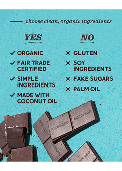 Ingredients: Organic Dark Chocolate (*Organic Cacao Beans, *Organic Raw Cane Sugar, *Organic Cocoa Butter, *Organic Vanilla Beans), Chocolate Crème Filling (Organic Coconut Oil, *Organic Raw Cane Sugar, *Organic Cacao Beans, *Organic Cocoa Butter, Organic Whole Milk, Natural Flavor, *Organic Vanilla Beans).