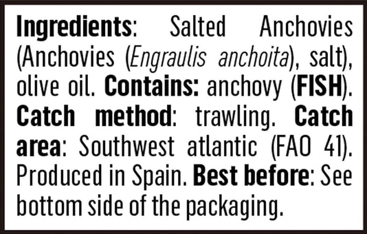 Ingredients: Salted Anchovies (Anchovies (Engraulis Anchoita), Salt), Olive Oil.