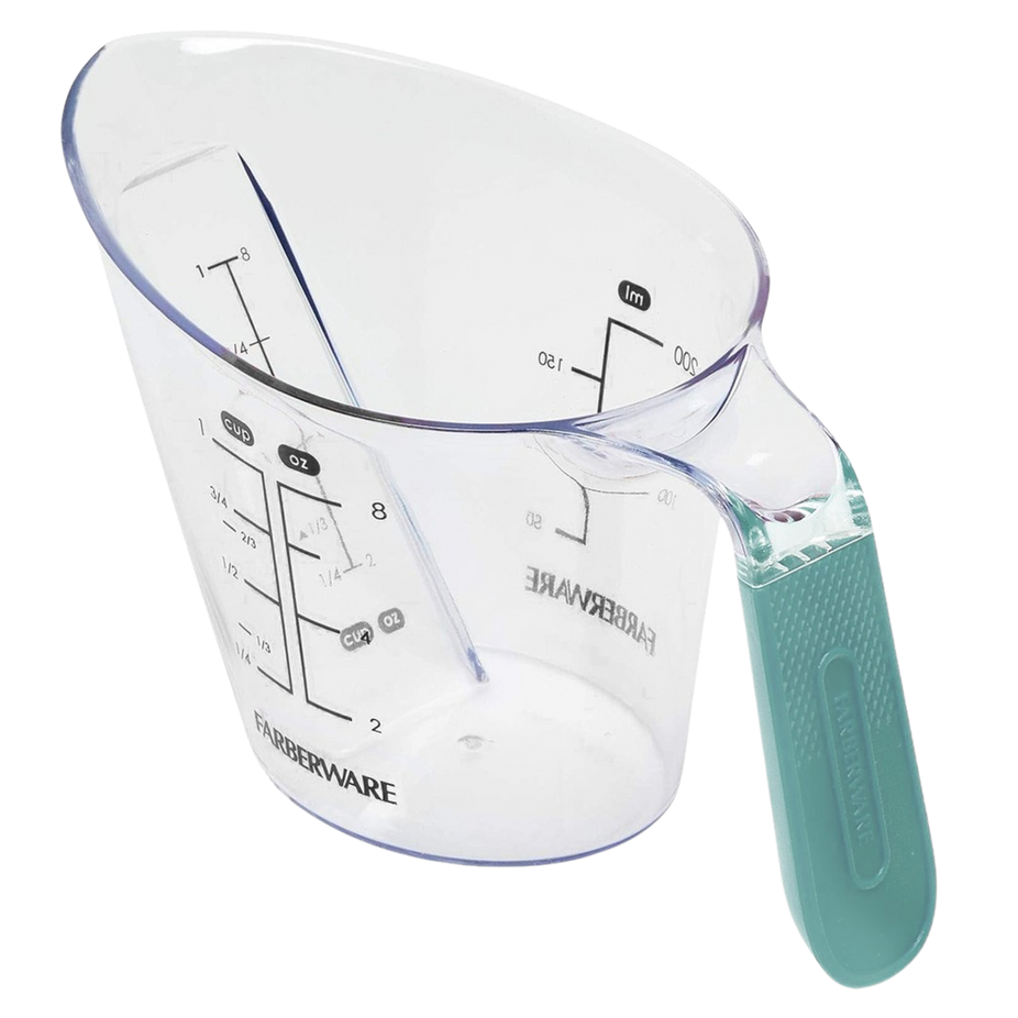 The Farberware Angled Measuring Cup (1 Cup, Aqua) offers effortless precision with a stylish twist to elevate your cooking and baking experience.