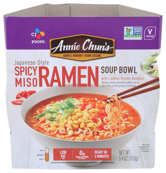 Annie Chun’s Spicy Miso Ramen Soup Bowl brings the bold, umami-rich flavor of a ramen house straight to your microwave.