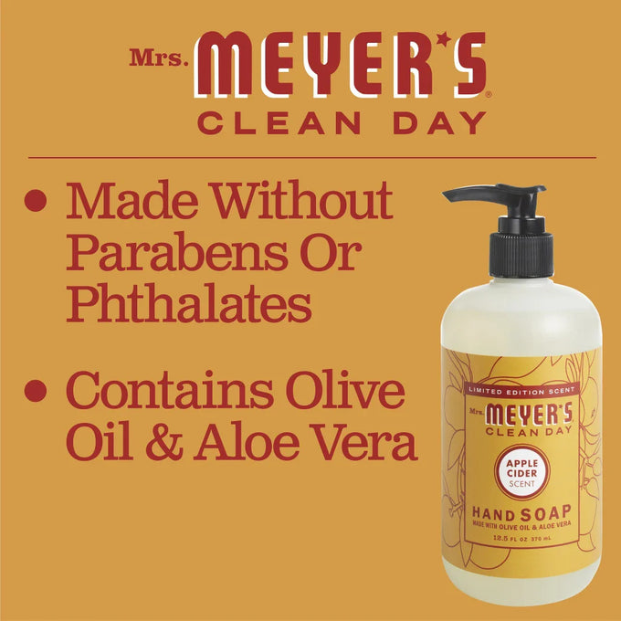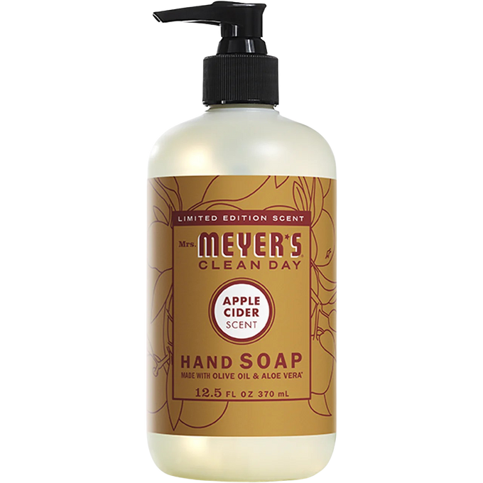 Mrs. Meyer's Clean Day apple cider liquid hand soap brings the cozy, sweet-spiced aroma of fall into your home while gently cleansing your hands.