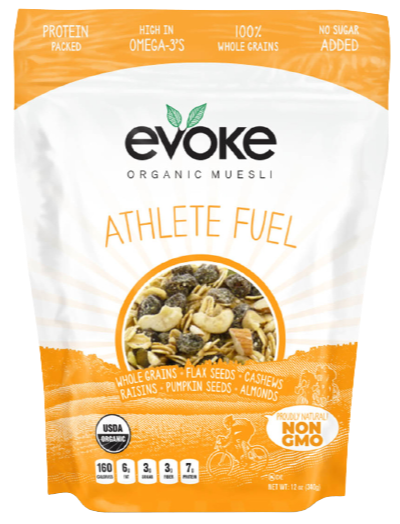 Our Athlete Fuel Organic Muesli is packed with almonds, cashews, raisins, pumpkin seeds, flax seeds, and whole grains to keep you moving. The nuts and seeds provided protein, amino acids and essential omega-3 fatty acids. We add just enough raisins so it tastes great but isn’t loaded with sugar. Whether it’s your afternoon yoga class or a shootout after overtime, we all exercise for different reasons, but need the right fuel to keep us going. At Evoke, we make the best muesli by finding the perfect convergence of nutrition and taste.
