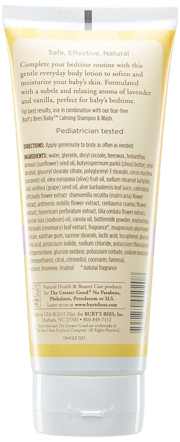 Ingredients: Water, glycerin, decyl cocoate, beeswax, helianthus annuus (sunflower) seed oil, butyrospermum parkii (shea) butter, cetyl alcohol, glyceryl stearate citrate, polyglyceryl-3 stearate, cocos nucifera (coconut) oil, olea europaea (olive) fruit oil, sodium stearoyl lactylate, vitis vinifera (grape) seed oil, aloe barbadensis leaf juice, anthemis nobilis flower extract, buttermilk powder, calendula officinalis flower extract, centaurea cyanus flower extract, chamomilla recutita (matricaria) flower extract, rosmarinus