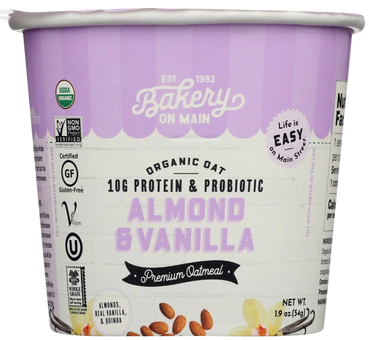 Ingredients: Organic Whole Grain Oats, Organic Cane Sugar, Organic Almonds, Organic Isolated Soy Protein, Organic Vanilla Extract, Organic Quinoa, Sea Salt, Organic Inulin, Bacillus Coagulans Gbi-306086.