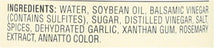 Ingredients: Water, Soybean Oil, Balsamic Vinegar (Wine Vinegar, Concentrated Grape Must, Cooked Grape Must, Sulfites), Sugar, Distilled Vinegar, Contains 2% or Less of: Salt, Spices, Dehydrated Garlic, Xanthan Gum, Calcium Disodium EDTA Added to Protect Flavor.