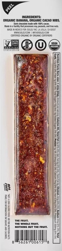 Indulge in Solely's Banana and Cacao Fruit Jerky for a delicious, pure-fruit snack you can feel good about.
