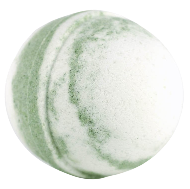 Ingredients: Sodium Bicarbonate, Citric Acid, Magnesium Sulfate (Epsom Salt), Sucrose (Sugar), Kaolin, Water, Polysorbate 80, Butyrospermum Parkii (Shea Butter) Fruit*, Theobroma Cacao (Cocoa) Seed Butter*, Arthrospira Platensis (Spirulina) Powder, Eucalyptus Globulus Leaf Oil, and Citrus Aurantifolia (Lime) Oil.
