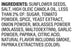 Ingredients: Sunflower Seeds, Salt, High Oleic Canola Oil, contains less than 2% of the following: Whey Powder, Sugar, Tomato Powder, Chili Pepper, Yeast Extract, Onion Powder, Molasses Powder (Molasses, Maltodextrin), Natural Flavors Including Smoke, Paprika, Garlic Powder, Citric Acid, Oleoresin Paprika (Color).