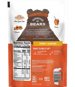 Ingredients: Our Bearly Processed Ingredients: Whole Grains Oats, Soy Protein Concentrate, Honey, Expeller Pressed Canola Oil, Soy Protein Isolate, Almonds, Soy Nuts (Roasted Soybeans), Natural Flavor, Whole Grain Crisp Rice (Whole Grain Rice, Barley Malt).