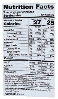 Ingredients: Red Beets, Coconut Oil, Ground Thyme.