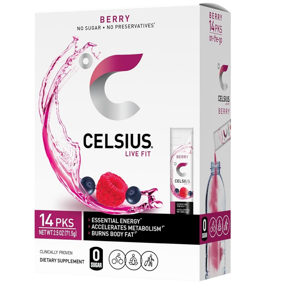 The Berry Hydration Drink Mixes bring Celsius' essential energy formula into a convenient, travel-ready powder that refreshes and rehydrates on the go.