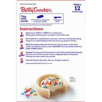 - INCLUDES: Cookie Mix, Frosting, Sprinkles & Paper Baking Cups