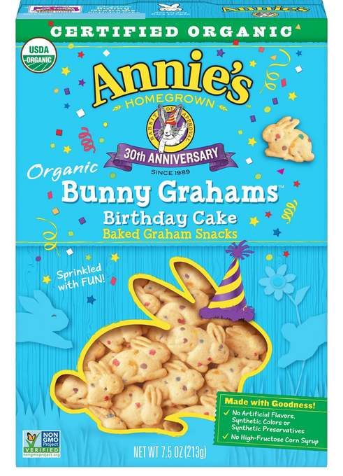 Ingredients: Organic Enriched Wheat Flour (organic wheat flour, niacin, iron, thiamin mononitrate, riboflavin, folic acid), Organic Cane Sugar, Organic Expeller-Pressed Sunflower Oil, Organic Invert Cane Syrup, Organic Corn Flour, Organic Whole Wheat Flour (graham flour), Organic Rice Flour, Calcium Carbonate, Organic Potato Starch, Sodium Bicarbonate, Sea Salt, Color (organic turmeric, organic annatto, carrot juice, blueberry juice, red cabbage juice, red radish juice), Natural Flavor, Citric Acid, Mixed Tocopherols (vitamin E) to Protect Flavor.