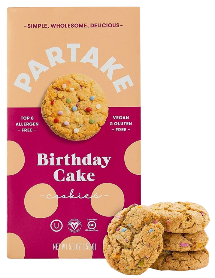Ingredients: Gluten Free Flour Blend (Organic Light Buckwheat Flour, Cassava Flour, Gluten Free Oat Flour, Tapioca Flour), Organic Fair Trade Cane Sugar, Non GMO Sunflower Oil, Gluten Free Oats, Rainbow Sprinkles (Sugar, Potato Starch, Maltodextrin, Rice Oil, Natural Colors [Paprika Extract, Turmeric Extract, Beet Extract, Spirulina Extract], Carnauba Wax) Tapioca Starch, Water, Sea Salt, Tapioca Fiber Syrup, Baking Soda, Vanilla Extract, Rosemary Extract