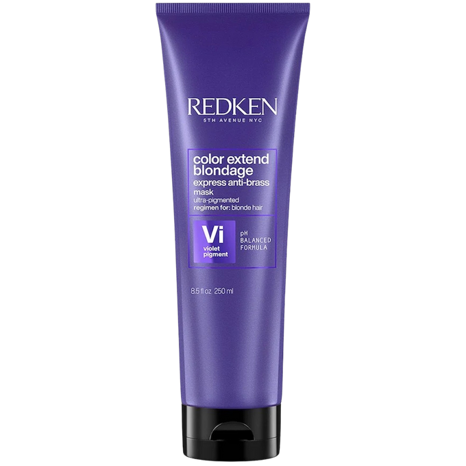 The Blondage Express Anti-Brass Purple Hair Mask is a deep conditioning treatment designed to tone and brighten blonde hair in just five minutes.