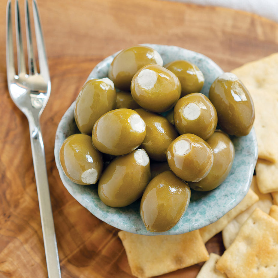 Ingredients: Halkidiki olives, water, blue cheese (cow milk, cheese cultures, rennet, salt, p. roqueforti), cream cheese (skimmed milk, cream, salt, lactic acid cultures) sea salt, citric acid (acidity regulator), xanthan gum (stabilizer), locust bean gum (stabilizer). may contain pits/pit fragments. produced in a facility that processes tree nuts.