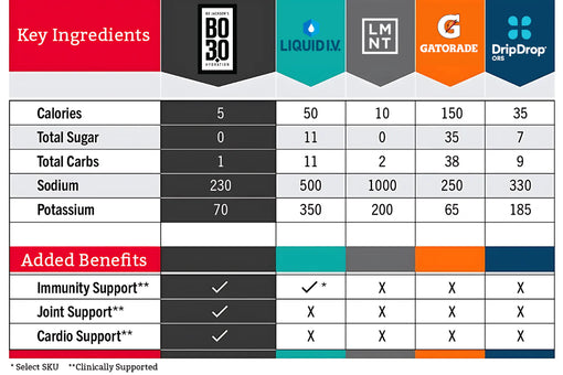The BO 3.0 Variety Pack includes 15 hydration packs, each designed to support cardiovascular health, joint wellness, and overall vitality.
