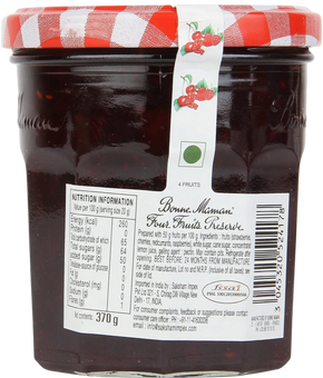 Ingredients: Fruits (Strawberries, Cherries, Redcurrants, Raspberries), Sugar, Brown Cane Sugar, Concentrated Lemon Juice, Fruit Pectin.