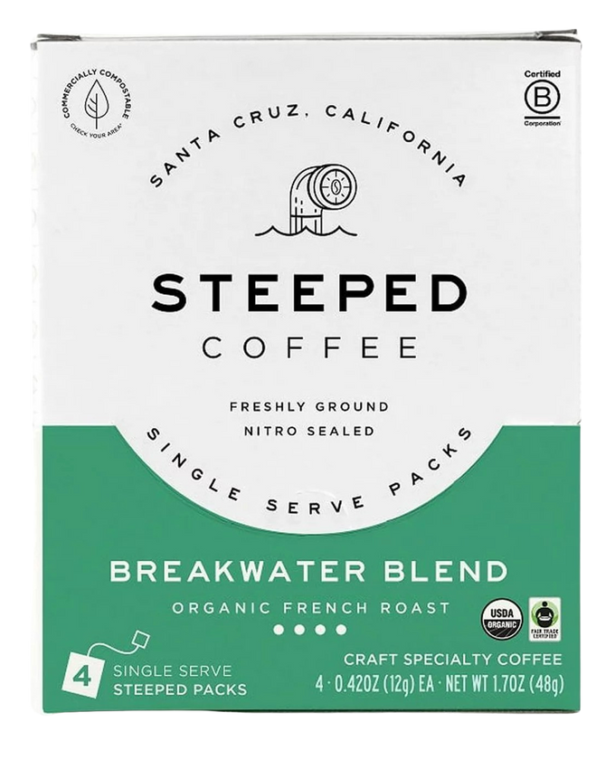 Enjoy the bold and satisfying taste of Steeped Coffee's Breakwater Blend French Roast, ideal for any time of day.
