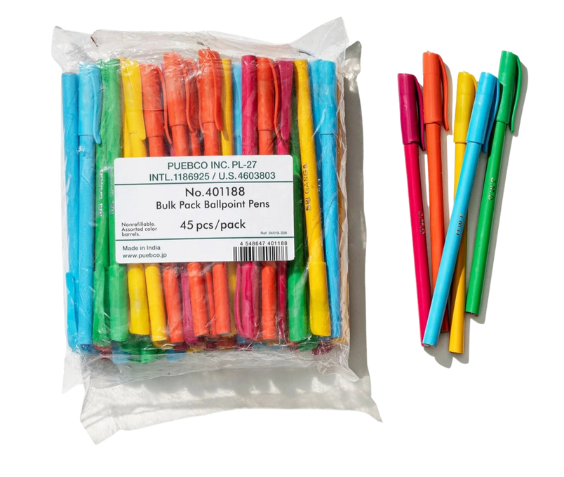 The bulk pack ballpoint pens from puebco includes 45 brightly colored (easily findable) ballpoint pens with blue ink ready to jot down everything you need to remember. Would also make a great gift for the nurse or waitress in your life.