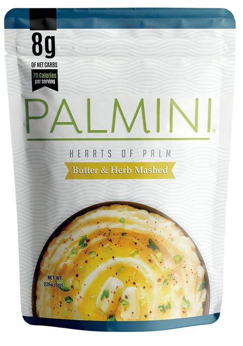 The Palmini Butter & Herbs Mashed Pouch is a flavorful, low-carb option made from hearts of palm that lets you enjoy your favorite dishes guilt-free.