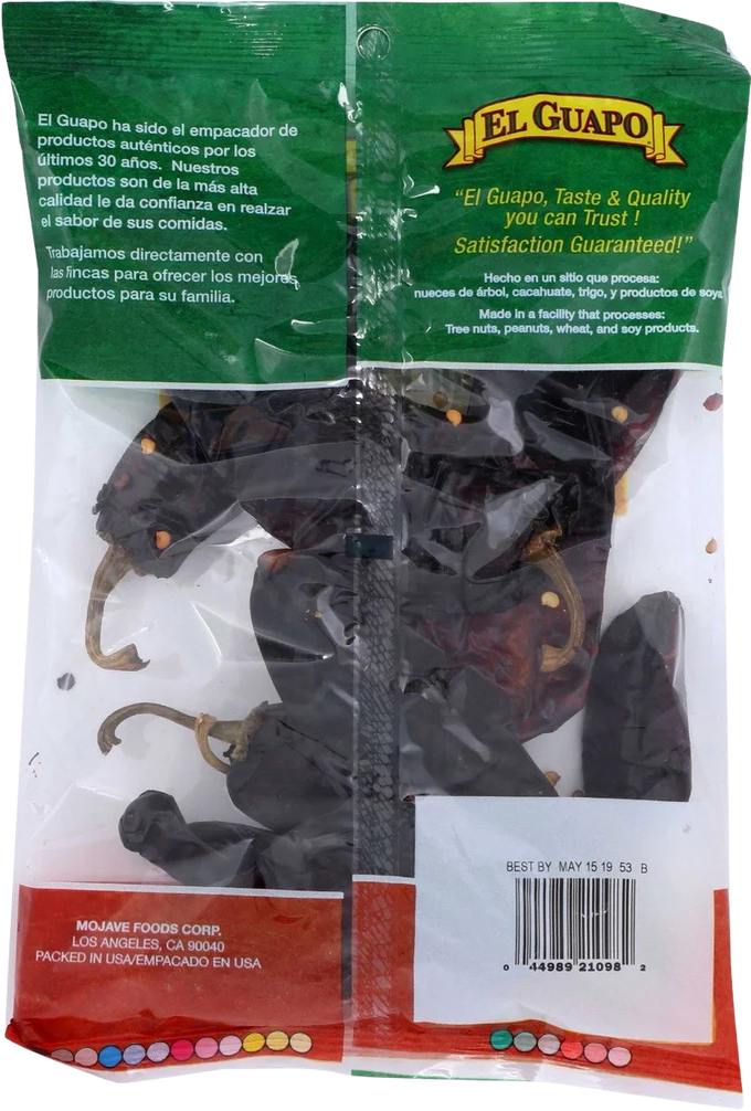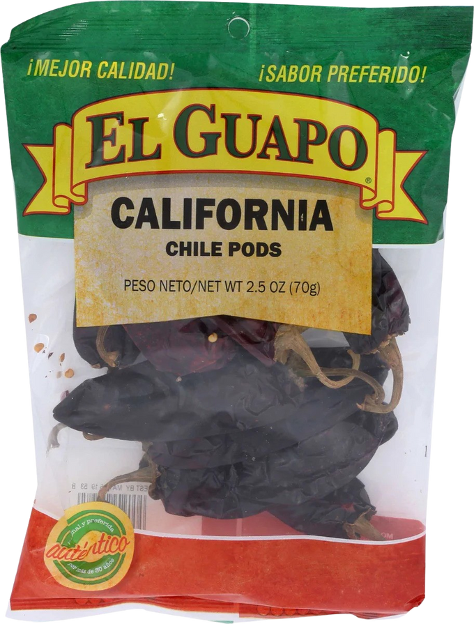 California Chiles (Chile California), one of the milder dried red chiles, are perfect for adding just a kick of heat to enchilada sauce, soups and stews. These chiles are the dried form of Anaheim chiles, a variety of the famed New Mexico Hatch chile. Fresh Anaheim chiles are long and bright green with a mild flavor and are ideal for chiles rellenos. When ripened and dried, they are bright red with a sweet bell pepper flavor. Use California Chiles to make red chile sauce for tamales or shredded pork for tacos. One of the many dried chiles offered by El Guapo, you can be confident that our products are of the highest quality. For over 30 years, El Guapo has provided ingredients to make delicious, authentic Mexican meals for your family.