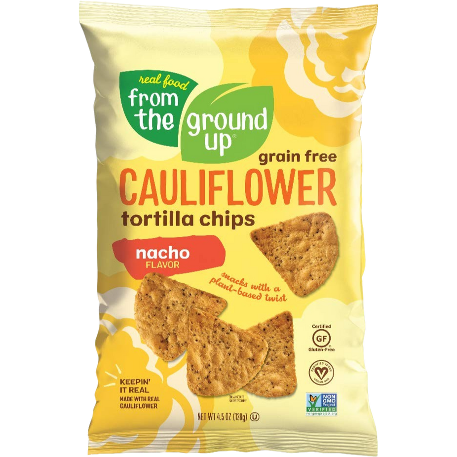 From The Ground Up Cauliflower Nacho Tortilla Chips deliver bold, cheesy flavor with a veggie-packed twist.