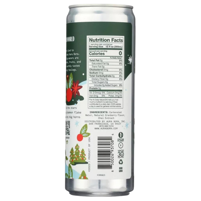 The blend of chai spices and tart cranberry creates a flavorful and invigorating beverage that will captivate your taste buds. With no artificial flavors or sweeteners, this sparkling water is a guilt-free way to stay hydrated and satisfied. Whether you're looking for a new twist on your daily hydration routine or a delicious alternative to sugary drinks, Aura Bora Chai Cranberry Sparkling Water is sure to become a favorite.