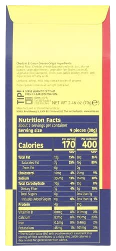 Ingredients: Wheat flour (gluten), cheddar cheese (30%) (milk), vegetable fats (palm, coconut) and vegetable oil (rapeseed), onion (2%), salt, garlic.