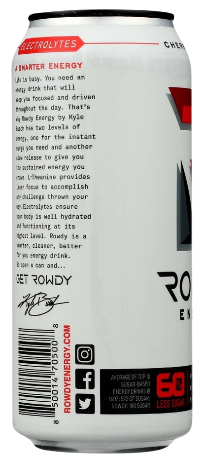 UNPARALLELED TASTE – This can is packed with sweet cherry goodness, and a kick of lime tartness. Because sometimes it takes a swift kick of cherry limeade energy to get you going. Now you’ve got it. So get going. Refreshingly carbonated. Rowdy Energy is also available in a variety of other bold and delicious flavors